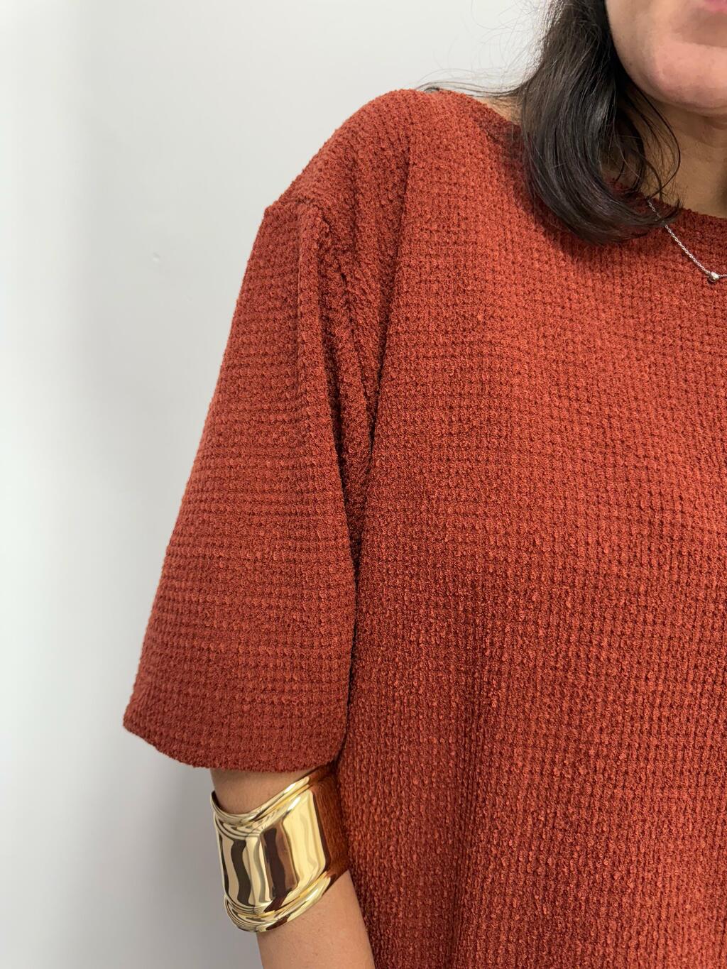 O conjunto é composto por uma blusa de tricô de manga longa com gola canoa — toque macio, caimento leve, traço minimalista — e uma saia midi de tricoline com movimento suave e estrutura delicada com bolsos laterais e elástico na sintura.